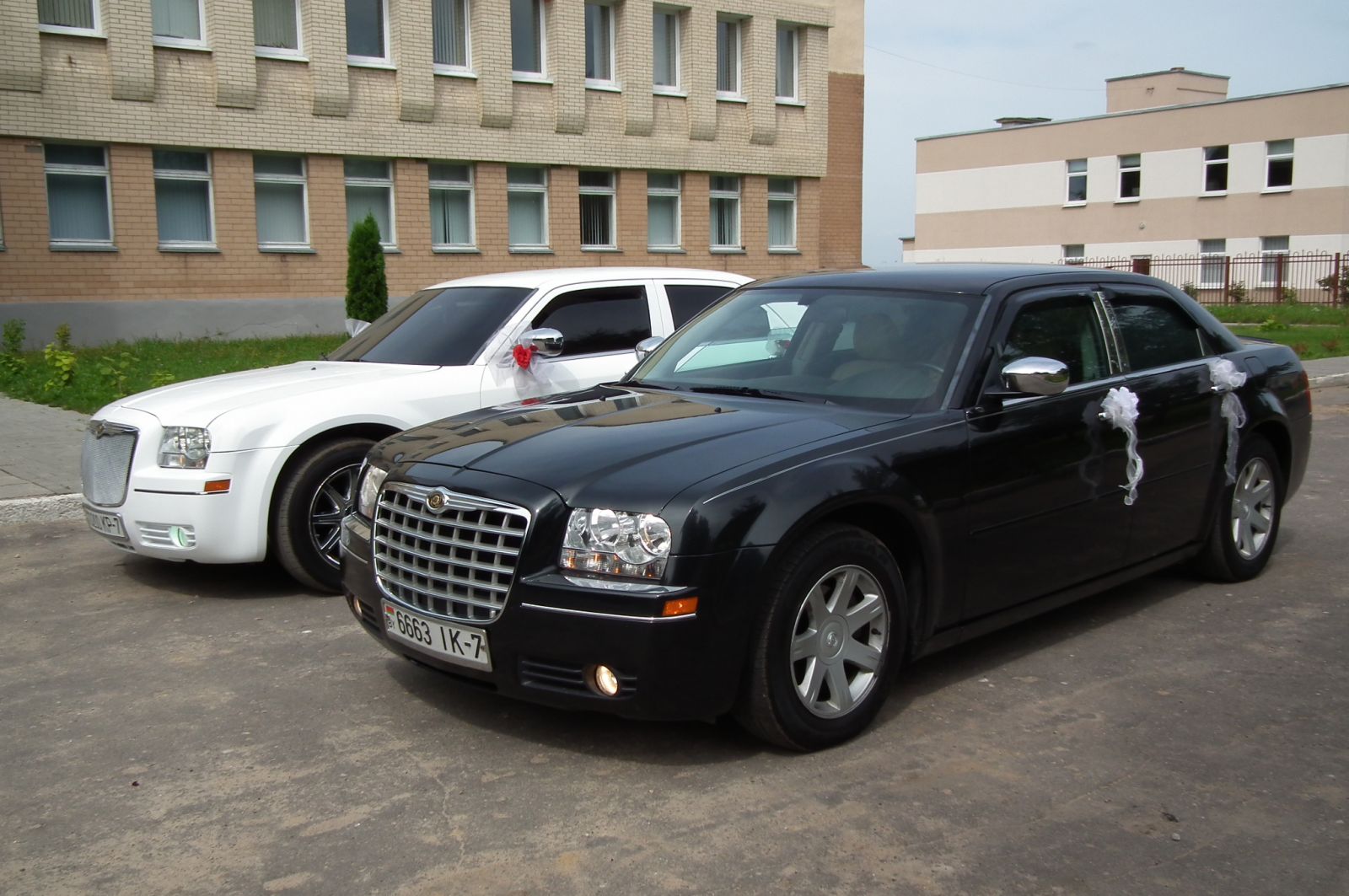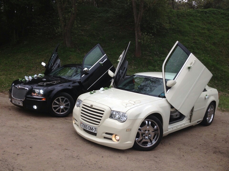 Большой выбор крайслеров на прокат: крайслеры черного и белого цвета, аренда крайслера с аэрографией, черно-белые крайслеры |