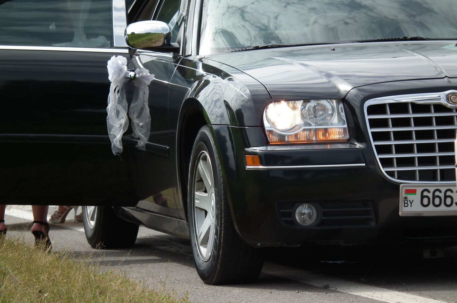 Крайслер 300С черного цвета красивый автомобиль, который идеально подходит для свадебного кортежа. |