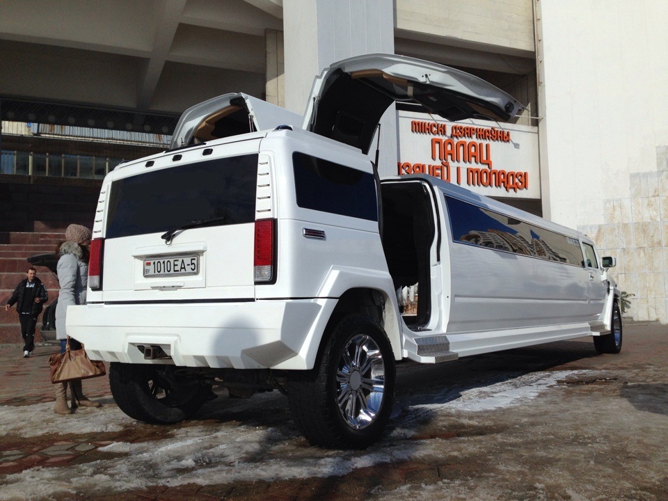 Большой эффектный лимузин Хаммер на 20 мест на прокат в Минске а также с выездом в другие города Беларуси. Крутые подсветки, музыка и акустика, бар, роскошный салон - все это про лимузин Хаммер Н2. |